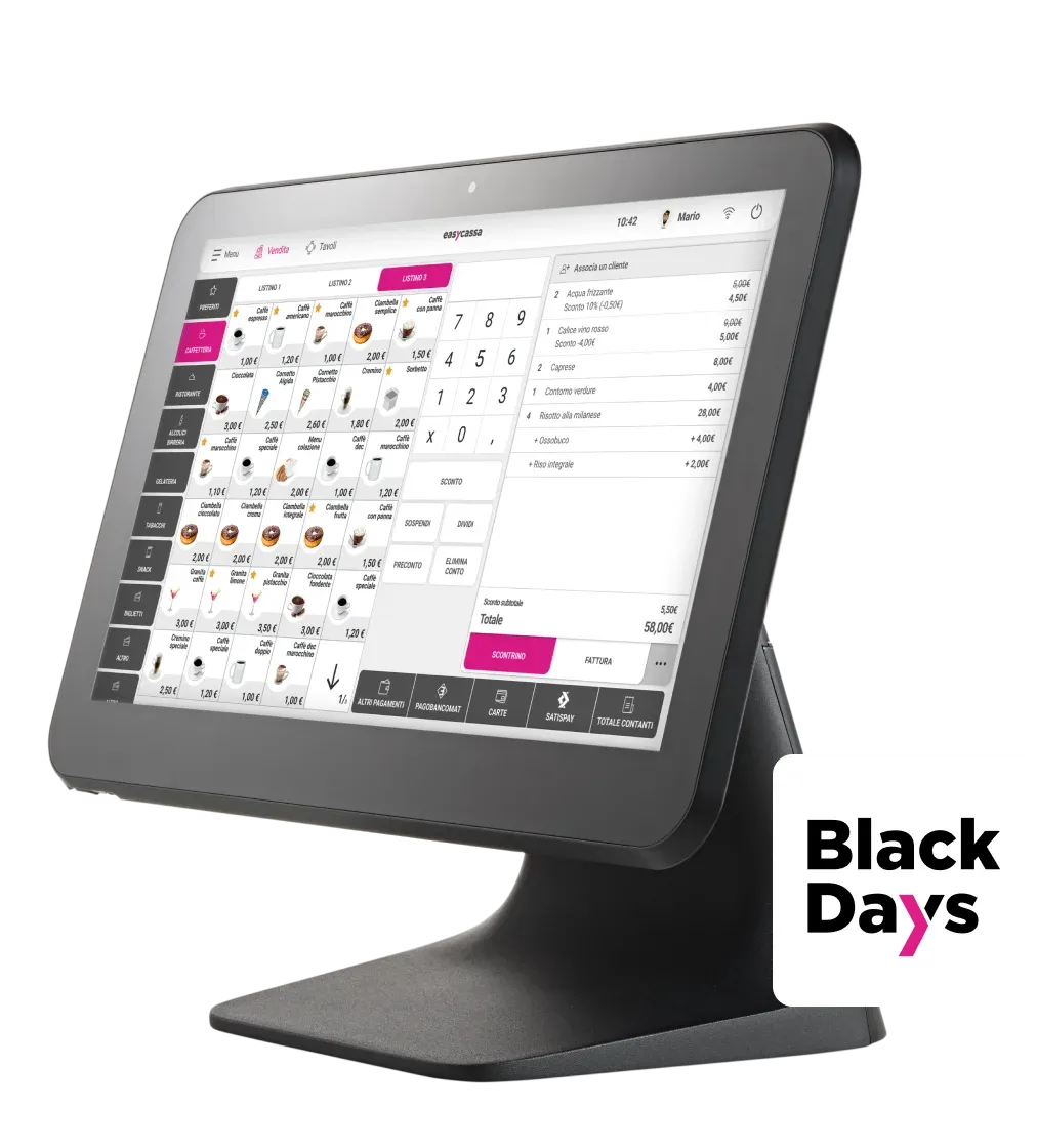 Grazie a un team di designer specializzato nello sviluppo di tecnologie per gli esercenti, Mooney ha creato EasyCassa, uno strumento di lavoro che con un abbonamento Tutto Incluso offre tutto ciò che serve al tuo punto vendita, eliminando le complicazioni dei moduli aggiuntivi, delle licenze a pagamento, della gestione di diversi fornitori per i dispositivi di cassa o dei costi aggiuntivi per assistenza o per gli adeguamenti normativi. Pensiamo a tutto noi!